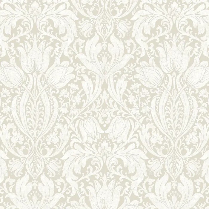 Papel pintado floral clásico vintage moteado en blanco de Borastapeter, colección Borosan Hem. Calidad tejido no-tejido lavable, medidas: 53 cm x 11,2 m.