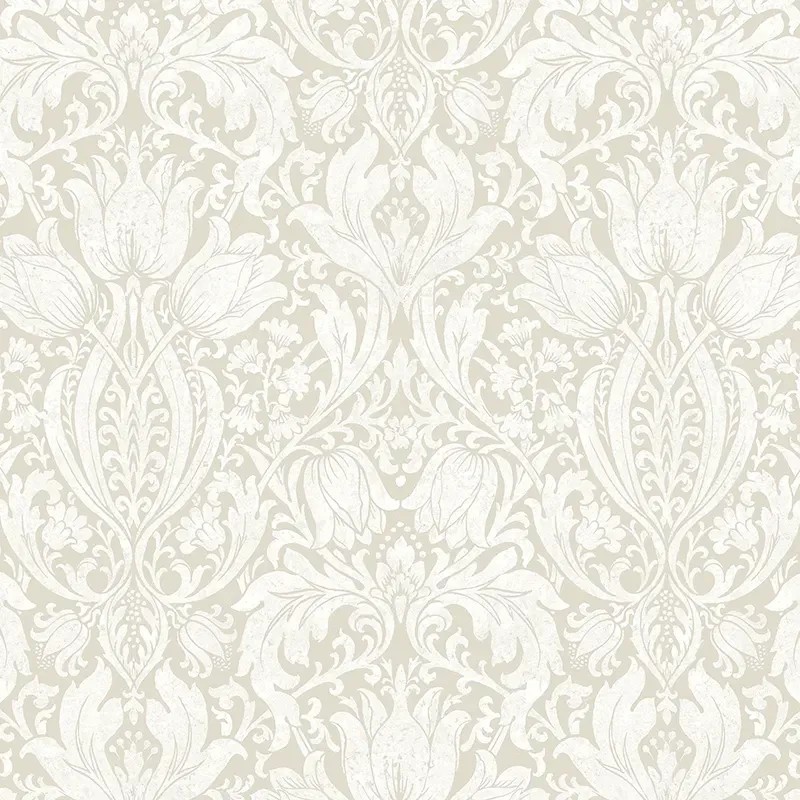 Papel pintado floral ornamental tulipanes y lirios en gris de Borastapeter, colección Borosan Hem. Calidad tejido no-tejido lavable, medidas: 53 cm x 11,2 m.