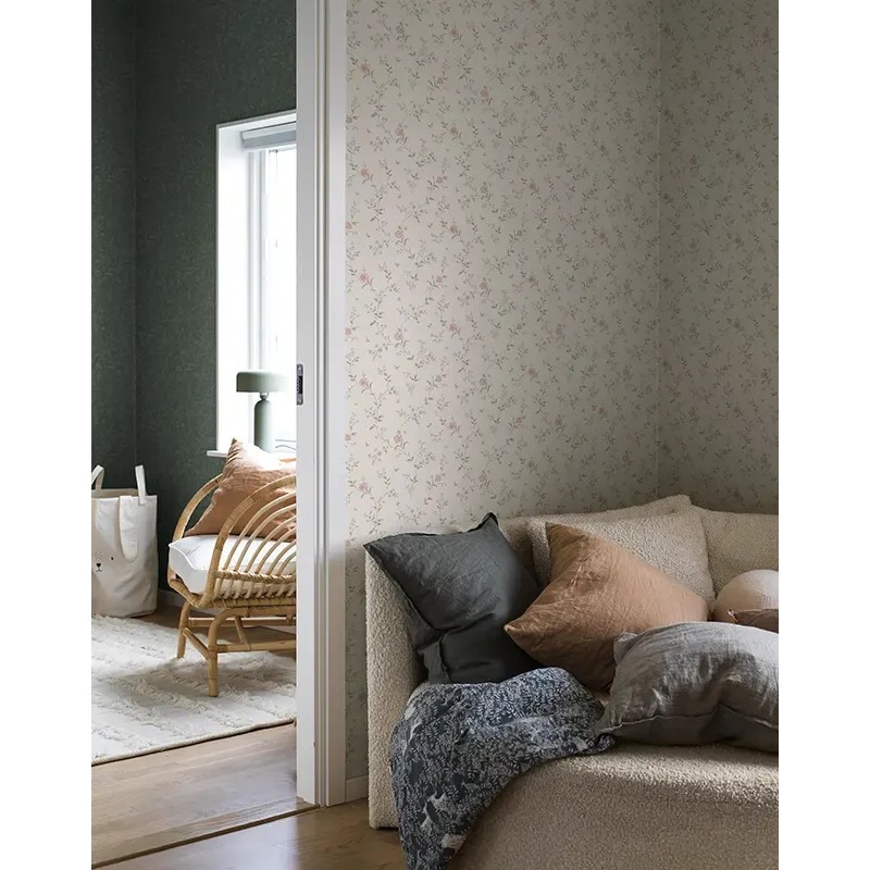 Papel pintado retro flores nostálgicas multicolor de Borastapeter, colección Borosan Hem. Calidad tejido no-tejido lavable, medidas: 53 cm x 11,2 m.