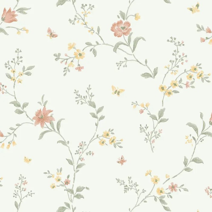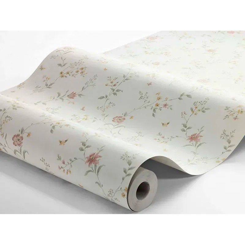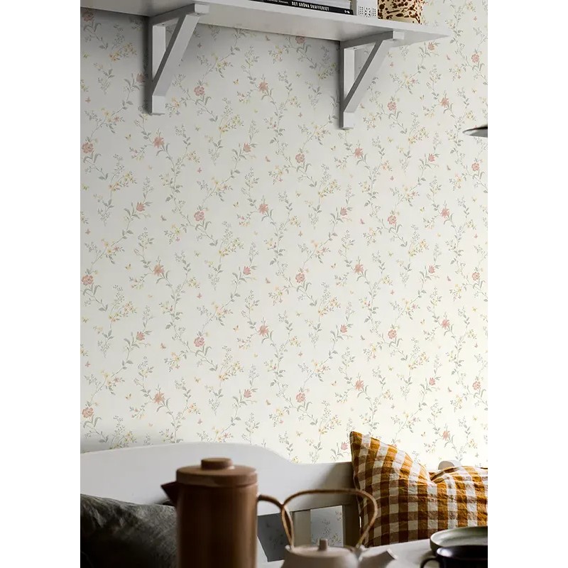 Papel pintado romántico diseño floral años 30 en beige y multicolor de Borastapeter, colección Borosan Hem. Calidad tejido no-tejido lavable, medidas: 53 cm x 11,2 m.