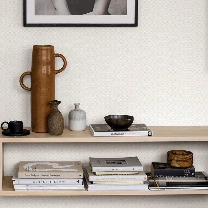 Papel pintado japandi flores kimono japonés en gris y blanco de Borastapeter, colección Borosan Hem. Calidad tejido no-tejido lavable, medidas: 53 cm x 11,2 m.