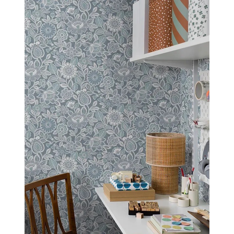 Papel pintado retro flores nostálgicas multicolor de Borastapeter, colección Borosan Hem. Calidad tejido no-tejido lavable, medidas: 53 cm x 11,2 m.
