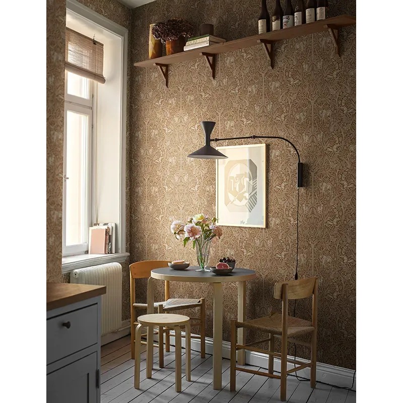 Con una paleta de dos tonos de marrón oscuro y beige, nuestro papel pintado Under the Elder Tree rezuma un estilo clásico lleno de interés y profundidad. El hermoso y sagrado saúco extiende sus ramas a través de las paredes ofreciendo sombra a los ciervos, liebres, faisanes y zorros que descansan y juegan en los grandes bosques de Suecia. Lleno de calidez y profundidad, siéntese y relájese mientras explora los secretos y sorpresas de este lujoso papel pintado. Se trata de un papel pintado ideal para crear una estética contemporánea y acogedora en el recibidor, el salón o el dormitorio.