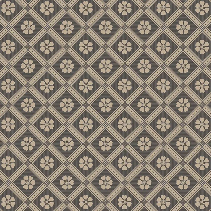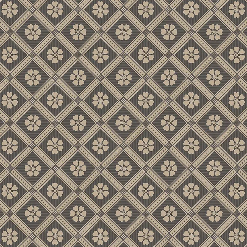 Papel pintado floral enrejado tradicional gris carbón y beige