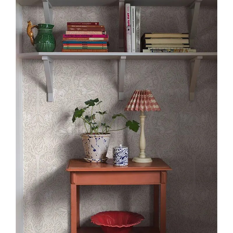En una sublime combinación de colores beige, nuestro papel pintado Under the Elder Tree deja que las delicias de la vida sean las protagonistas. Diseñado por Noomi Spange, el patrón presenta a un ciervo majestuoso y una liebre tímida que se refugian bajo el denso follaje de un poderoso saúco, mientras un astuto zorro persigue a los faisanes que huyen y buscan refugio en un arbusto de espino. Coloca este hermoso walpaper impreso en colografía en tu salón, pasillo o dormitorio para obtener una expresión influenciada por las artes y los oficios que se adapte tanto a grandes como a pequeños.