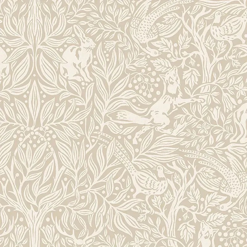 Papel pintado bosque ciervos y fauna estilo arts and crafts beige