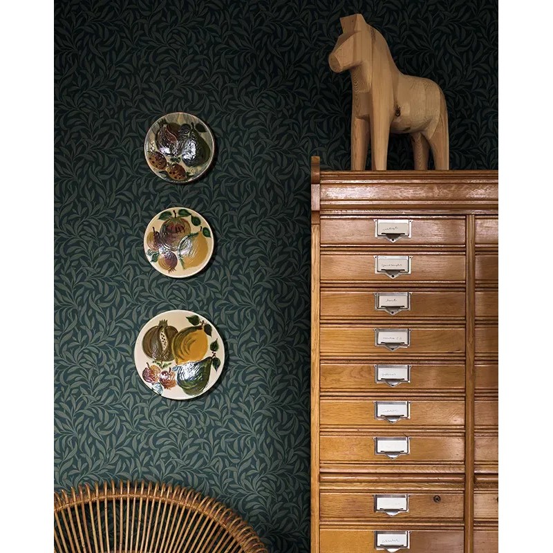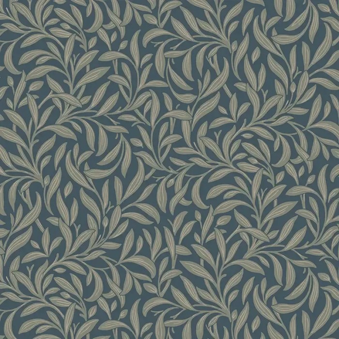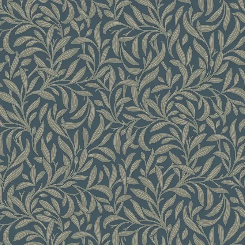 Papel pintado hojas densas arts and crafts azul verdoso y beige