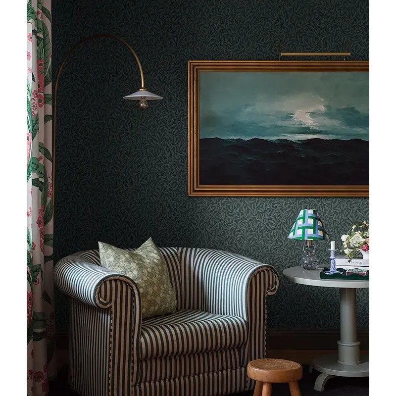 Dé un paseo por un oasis frondoso con nuestro papel pintado Vintergröna en una paleta rústica y rica de azul verdoso intenso y beige. Táctil y clásico, este papel pintado impreso con colografía presenta un patrón de follaje decorativo denso con toques de espíritu Arts and Crafts. Coloca éste papel de pared en tu salón, dormitorio o pasillo para un abrazo tranquilo y reconfortante.