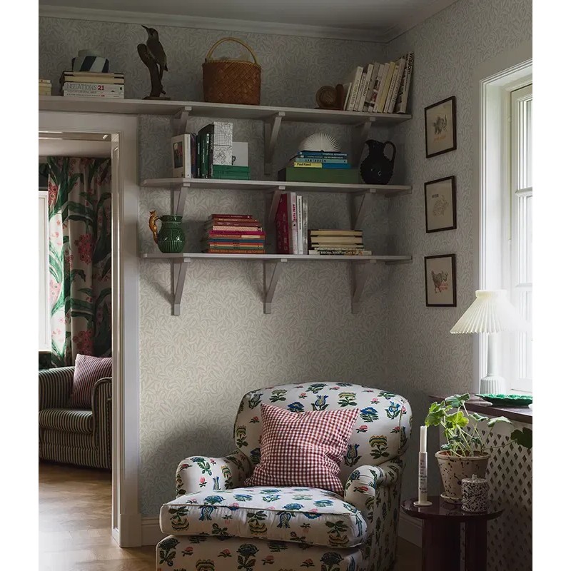 Sombreado en una combinación de colores neutros de beige y crema con toques de marrón, nuestro papel pintado Vintergröna ofrece un refugio cómodo y cálido en su frondoso oasis. Con un patrón decorativo de hojas densas, rezuma espíritu Arts and Crafts y envuelve la habitación en un abrazo tranquilo y armonioso. Coloca este papel pintado impreso en colografía en tu cocina, dormitorio o comedor para conseguir un toque escandinavo sencillo y elegante.