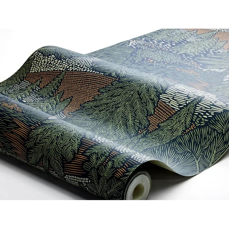 En cálidos y ricos tonos otoñales de verde salvia, naranja quemado y beige sobre un fondo azul medianoche, nuestro papel pintado Northern Forest aporta la belleza y la calma inherente de la naturaleza a su hogar. La grandeza y el esplendor del bosque se celebran verdaderamente en este denso patrón de abetos y árboles de hoja caduca. Contemporáneo y atrevido, Colócalo en tu oficina, salón o dormitorio infantil para darle un ambiente escandinavo sublime.
