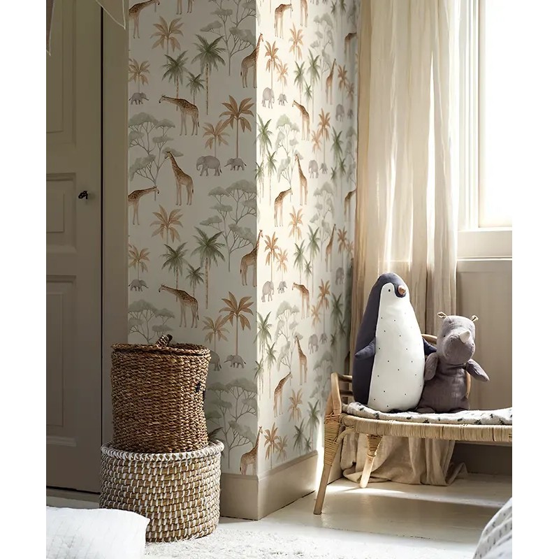 Nuestro papel pintado Savannah en tonos verde exuberante y beige dorado sobre un cálido fondo blanco es la opción ideal para crear un ambiente cautivador en la habitación de su hijo. Las jirafas alcanzan las copas de los árboles, y un elefante bebé sigue de cerca a su madre bajo la sombra protectora de los árboles en este diseño atemporal y contemporáneo. Creado en colaboración con la marca sueca de estilo de vida Newbie, este papel pintado Savannah es perfecto para colgar en el dormitorio, la sala de juegos o la guardería de su hijo para crear un preciado telón de fondo para el mundo en constante evolución de su hijo.