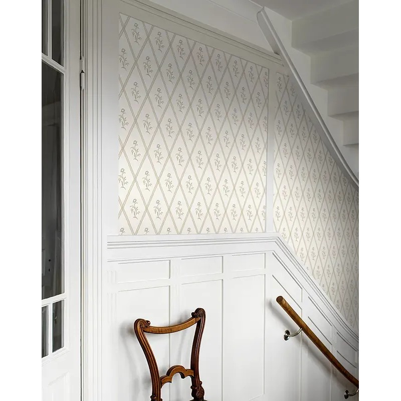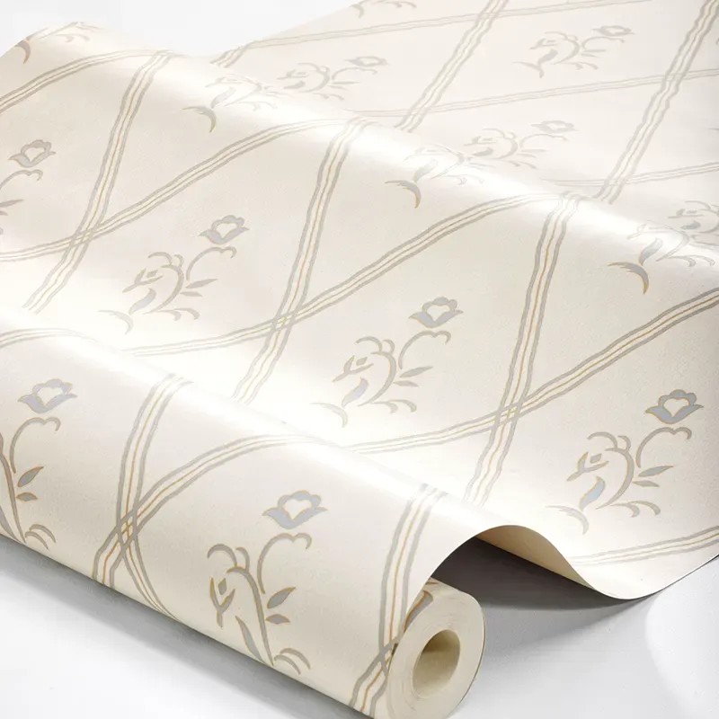 Con flores de color azul claro apagado sobre un fondo dorado de cáscara de huevo, nuestro papel pintado Signe en estampado cológrafo es atemporal y elegante en su simplicidad. Un diseño original de la década de 1920, el patrón de enrejado con líneas suaves y flores caprichosas rebosa encanto clásico y gracia sueca. Cuelga el papel pintado Signe en tu salón, pasillo o dormitorio para invitar a un toque de nostalgia y autenticidad a tu espacio.