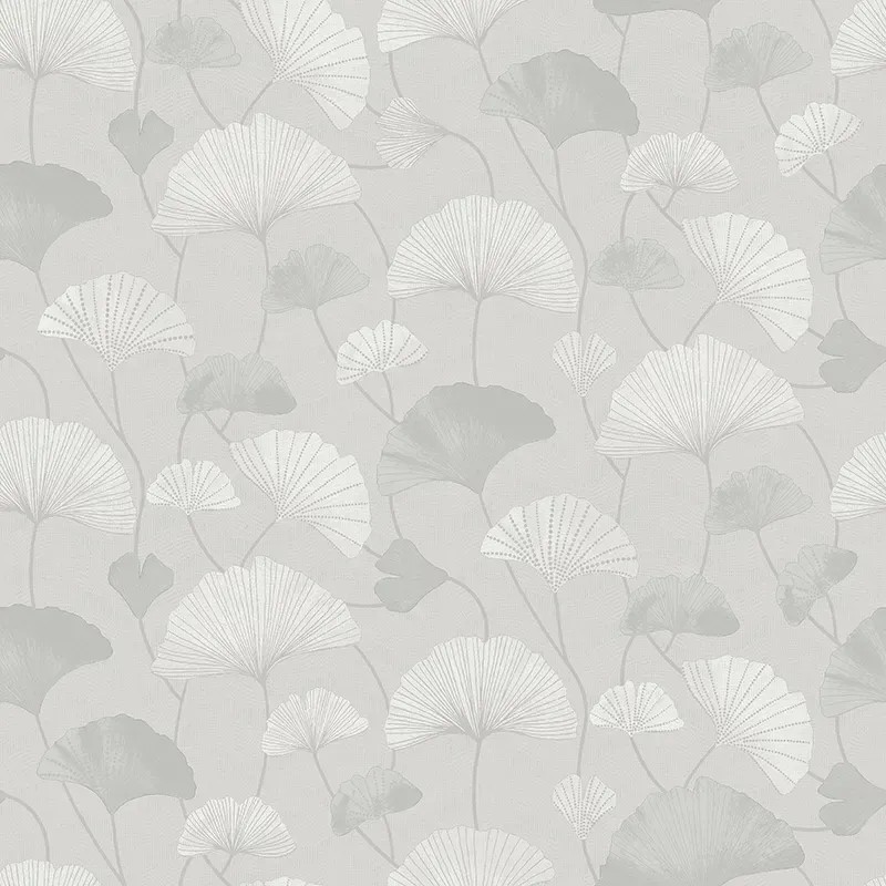 Papel pintado Sophia gris claro con hojas de ginkgo