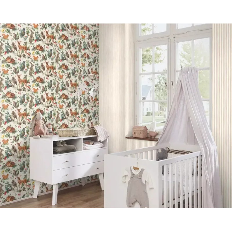 Papel pintado infantil fábula animales bosque blanco