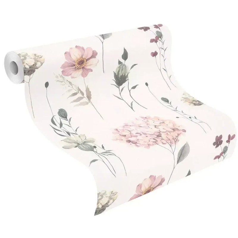 Papel pintado juvenil floral flores variadas blanco