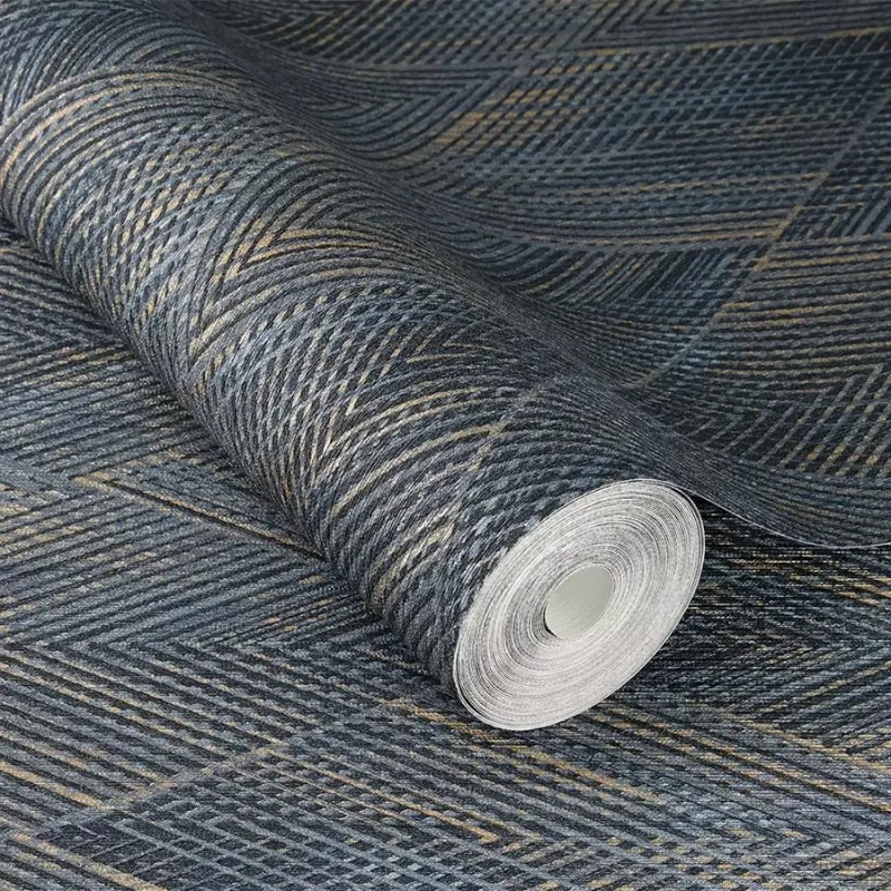 Este Papel pintado moderno rombos azul y dorado ideal para transformar cualquier estancia en un ambiente elegante, natural y armonioso gracias a su diseño sofisticado. Rasch Perfecto VI 844146.