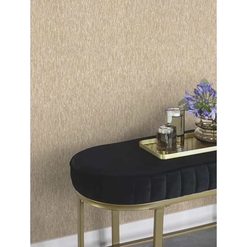 Este Papel pintado moderno efecto textil negro y dorado perfecto para crear espacios acogedores con personalidad, aportando textura y luz a la decoración interior. Rasch Perfecto VI 844269.