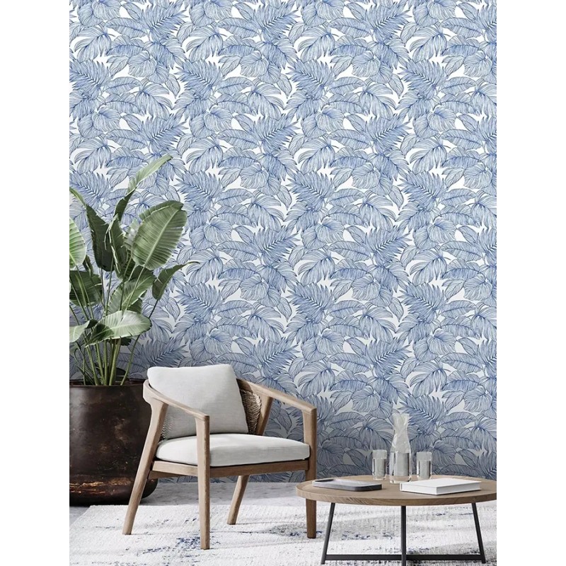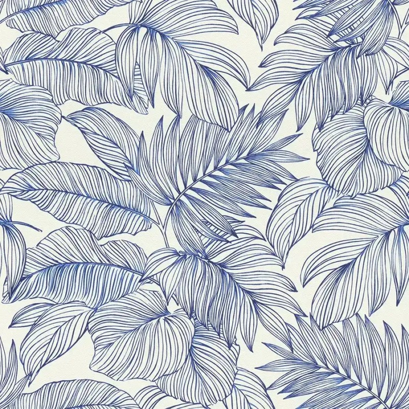 Este Papel pintado floral collage hojas grandes azul para llenar de carácter y personalidad cualquier rincón del hogar, desde el recibidor hasta el dormitorio. Rasch Symphony 865110.