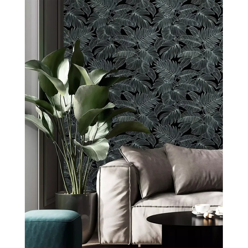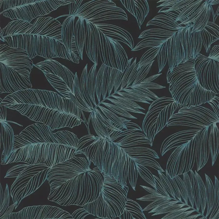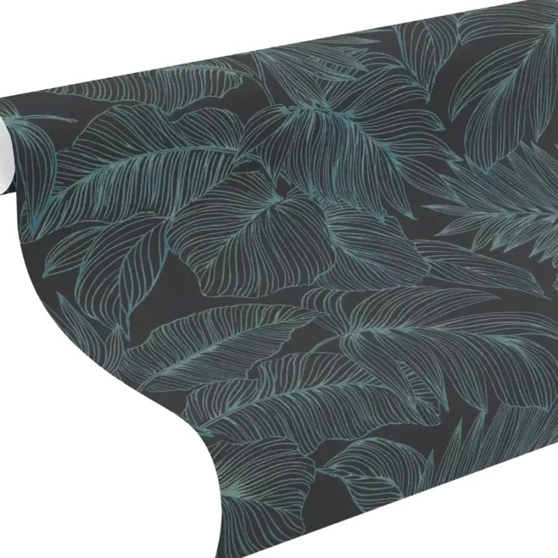 Este Papel pintado floral hojas grandes negro turquesa una elección acertada para renovar ambientes clásicos o modernos con estilo propio y sensación de amplitud. Rasch Symphony 865158.