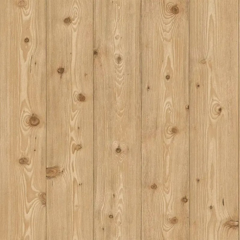 Este Papel pintado tablones madera anudada perfecto para crear espacios acogedores con personalidad, aportando textura y luz a la decoración interior. Rasch Symphony 869514.