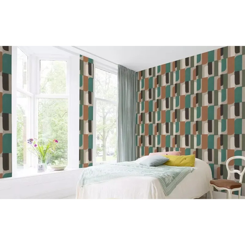 Este Papel pintado abstracto marrón para salón moderno diseñado para aportar dinamismo y equilibrio visual a paredes de interiores contemporáneos. Rasch Paraiso 330533.