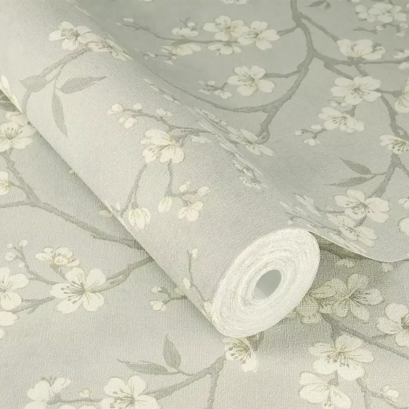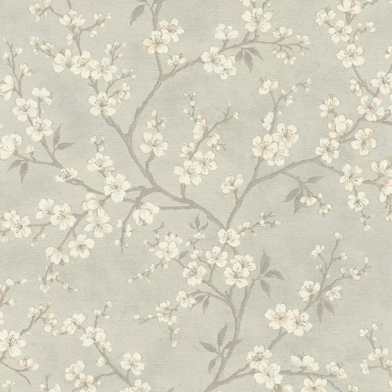 Este Papel pintado floral tonos pastel, cerezo en flor para llenar de carácter y personalidad cualquier rincón del hogar, desde el recibidor hasta el dormitorio. Rasch Country Charme 456769.