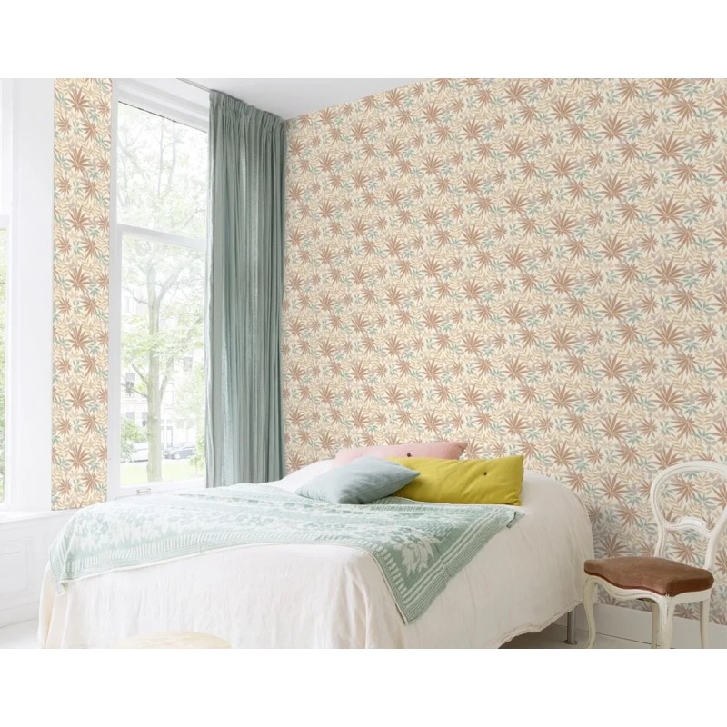 Este Papel pintado floral estilo boho una propuesta decorativa con gran versatilidad, capaz de realzar tanto estilos nórdicos como rústicos. Rasch Country Charme 692402.