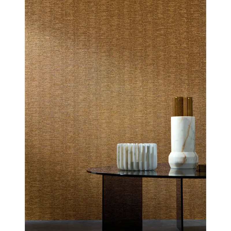 Papel pintado metalizado dorado de Casamance, colección Texture Cerame. Calidad vinílico lavable, medidas: 70 cm x 10 m.