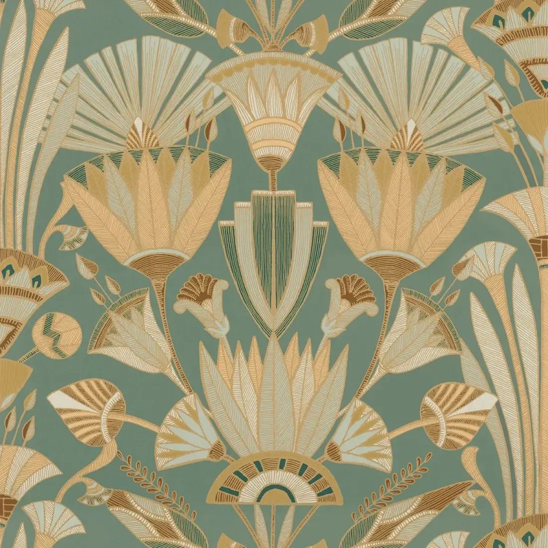 Papel pintado flores egipcias multicolor de Casamance, colección Bord du Nil. Calidad vinílico lavable, medidas: 68 cm x 10 m.