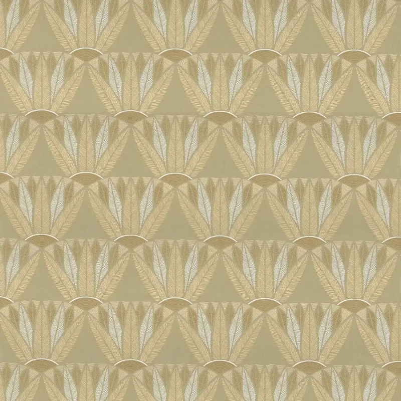 Papel pintado flor de loto egipcia dorado de Casamance, colección Bord du Nil. Calidad vinílico lavable, medidas: 106 cm x 10 m.