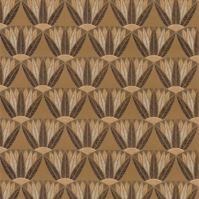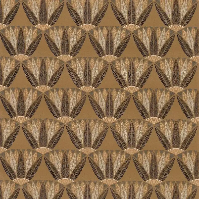 Papel pintado flor de loto egipcia negro y dorado de Casamance, colección Bord du Nil. Calidad vinílico lavable, medidas: 106 cm x 10 m.