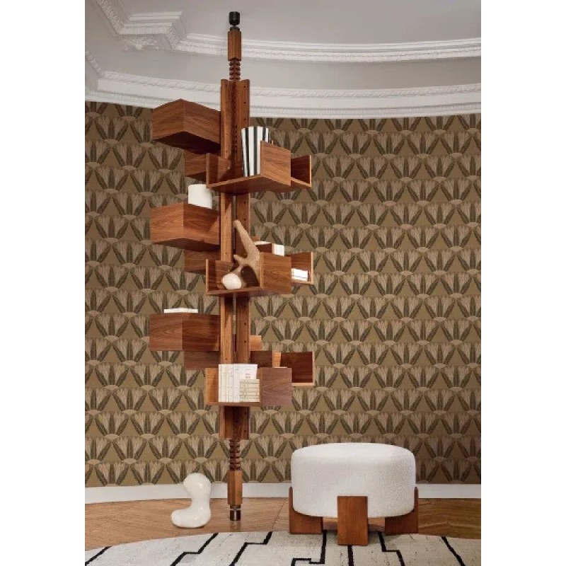 Papel pintado flor de loto egipcia verde y dorado de Casamance, colección Bord du Nil. Calidad vinílico lavable, medidas: 106 cm x 10 m.