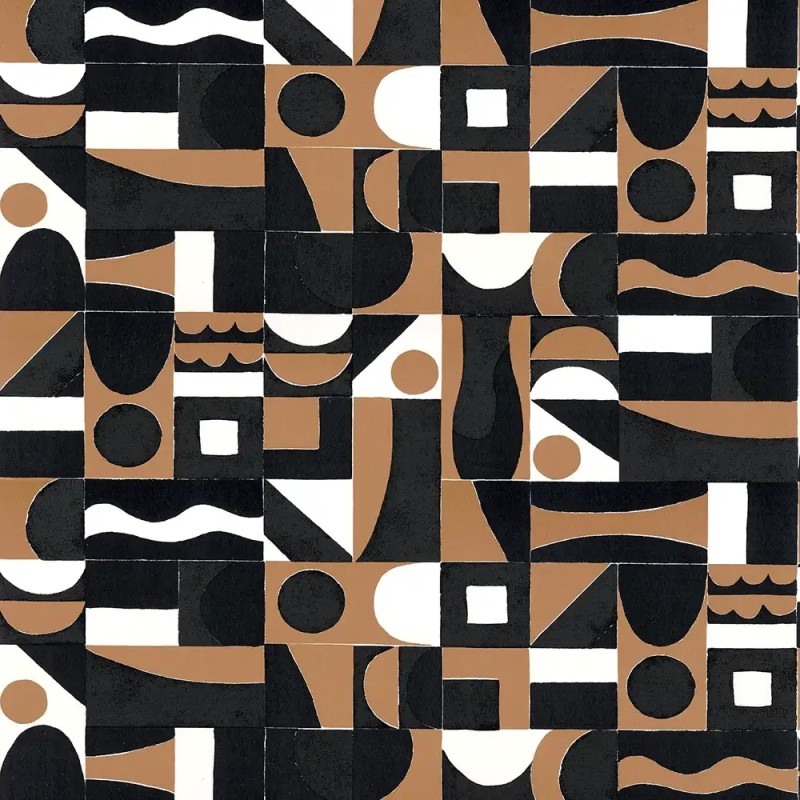 Papel pintado composición geométrica marrón claro de Casamance, colección Bord du Nil. Calidad vinílico lavable, medidas: 106 cm x 10 m.