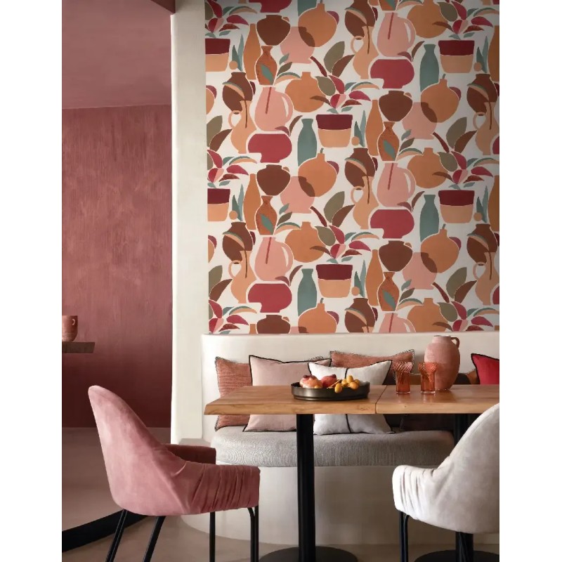 Papel pintado estilo provenzal vasijas barro marrón de Casamance, colección Terra Rossa. Calidad vinílico lavable, medidas: 70 cm x 10 m.