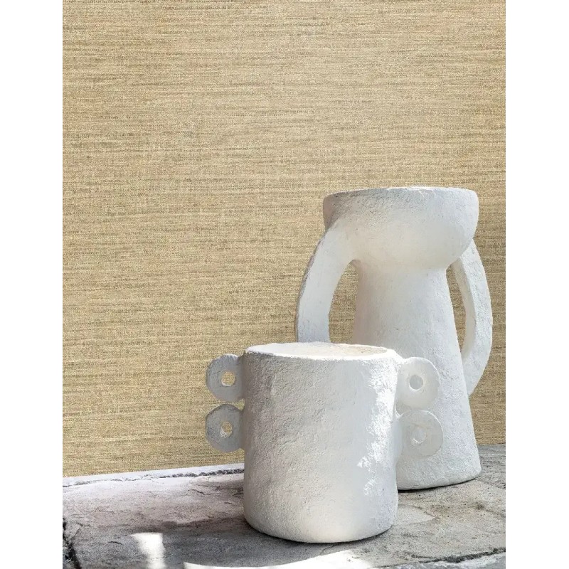 Papel pintado seda artesanal beige tostado de Casamance, colección Terra Rossa. Calidad vinílico lavable, medidas: 70 cm x 10 m.