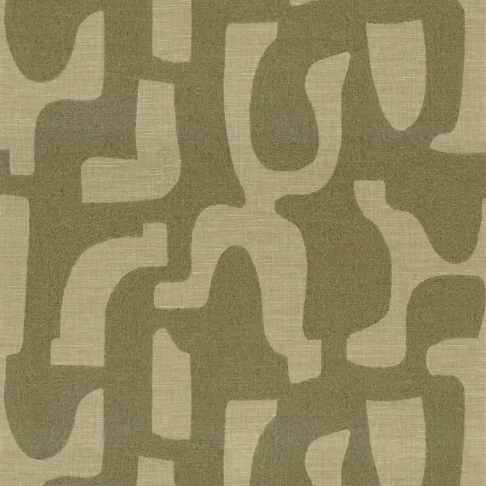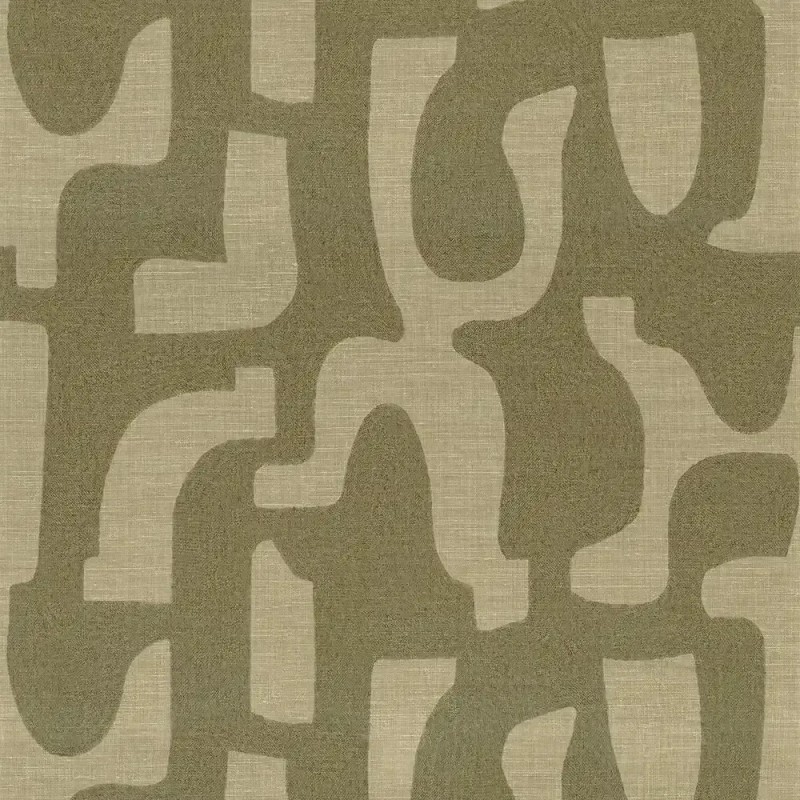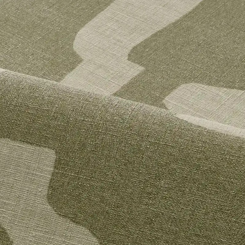 Papel pintado lino verde diseño étnico de Casamance, colección Le Lin 3. Calidad vinílico lavable, medidas: 70 cm x 10 m.