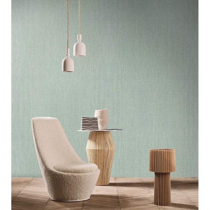 Papel pintado lino verde pastel de Casamance, colección Le Lin 3. Calidad vinílico lavable, medidas: 70 cm x 10 m.