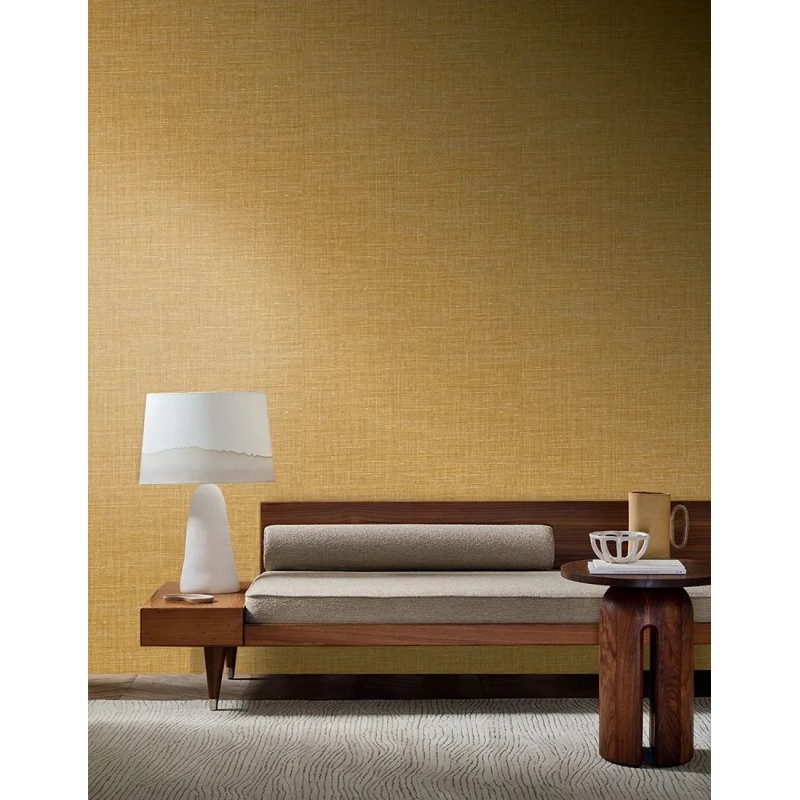 Papel pintado lino mostaza de Casamance, colección Le Lin 3. Calidad vinílico lavable, medidas: 70 cm x 10 m.