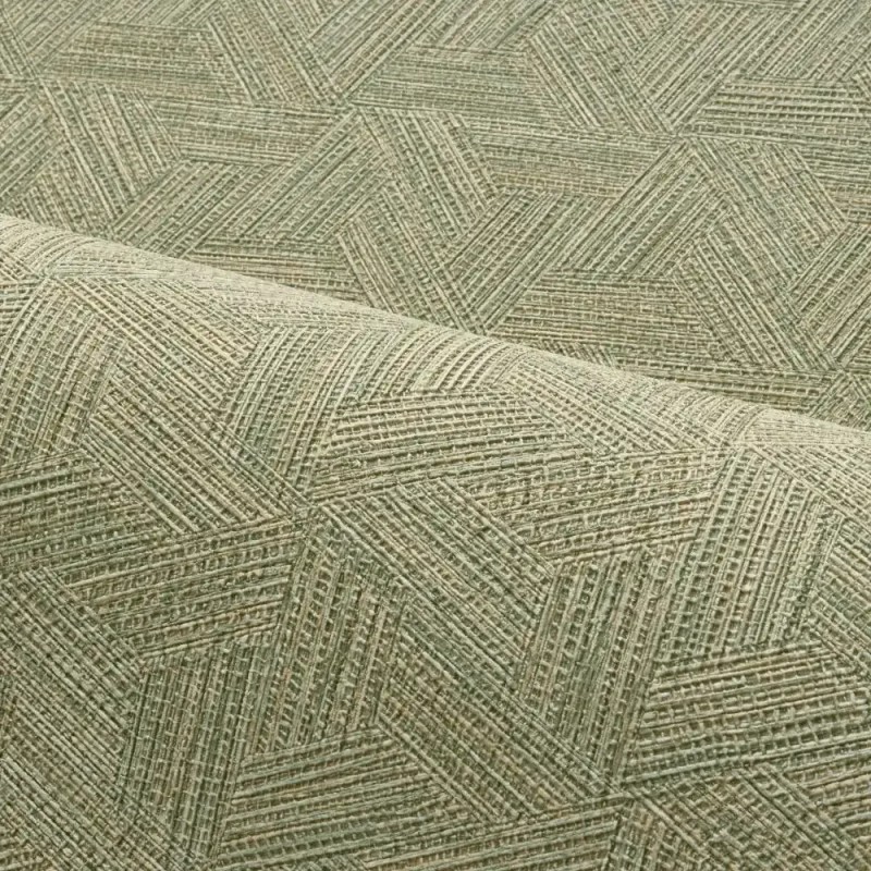 Papel pintado marquetería verde agua moderna de Casamance, colección Nature Precieuse. Calidad vinílico lavable, medidas: 70 cm x 10 m.