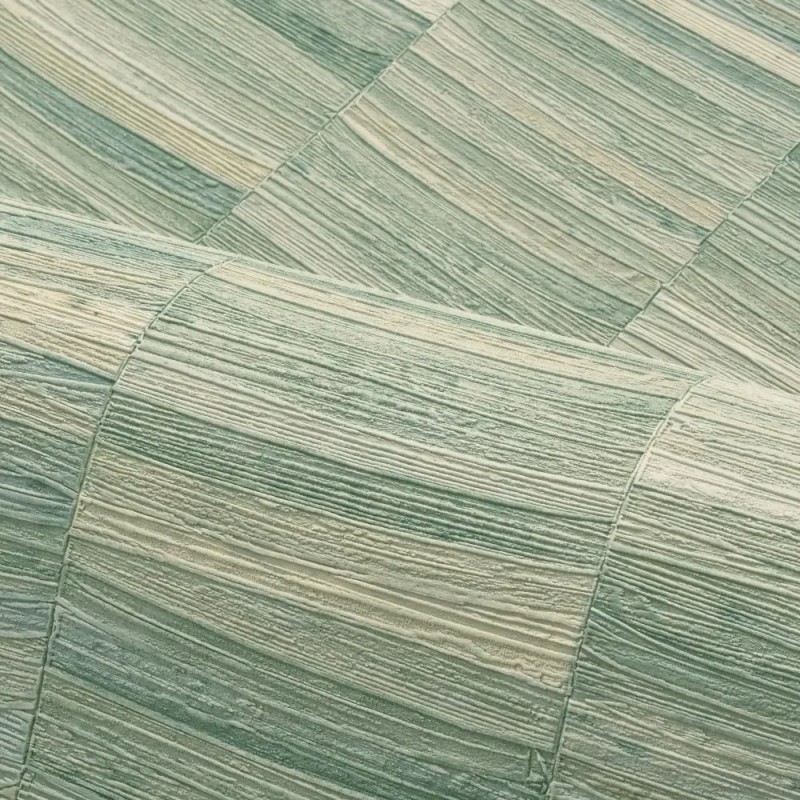 Papel pintado fibra natural rayada verde aceituna de Casamance, colección Nature Precieuse. Calidad vinílico lavable, medidas: 70 cm x 10 m.