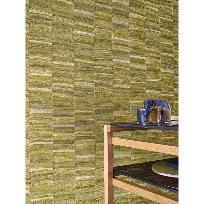 Papel pintado fibra natural rayada verde claro de Casamance, colección Nature Precieuse. Calidad vinílico lavable, medidas: 70 cm x 10 m.