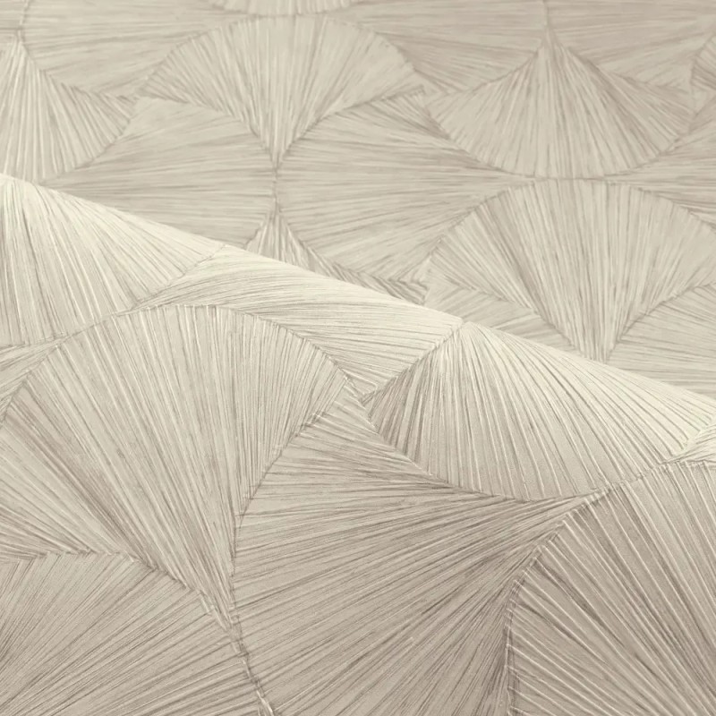 Papel pintado tropical greige con hojas balinesas de Casamance, colección Nature Precieuse. Calidad vinílico lavable, medidas: 70 cm x 10 m.