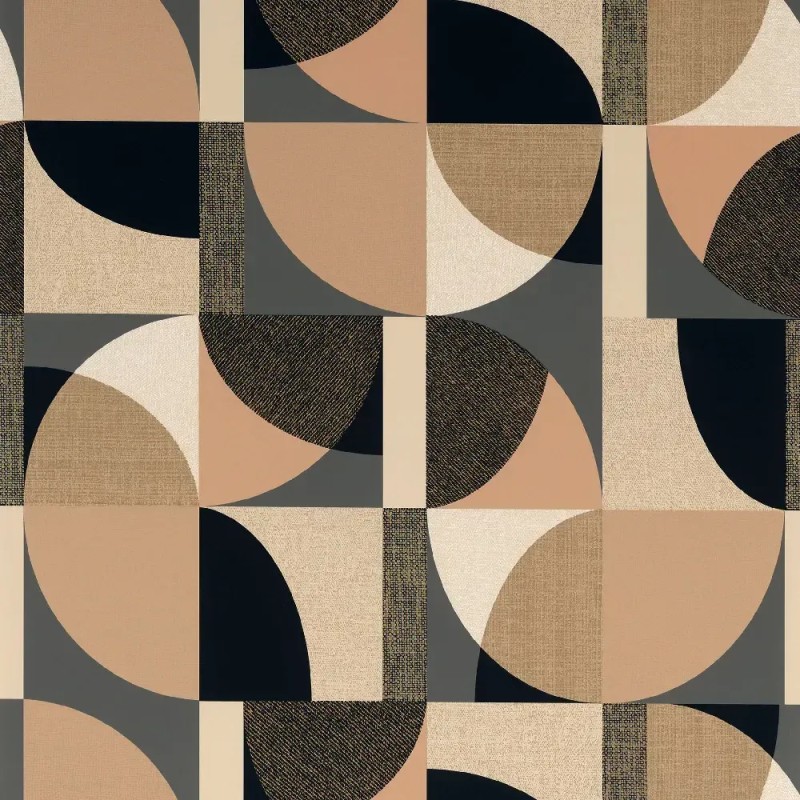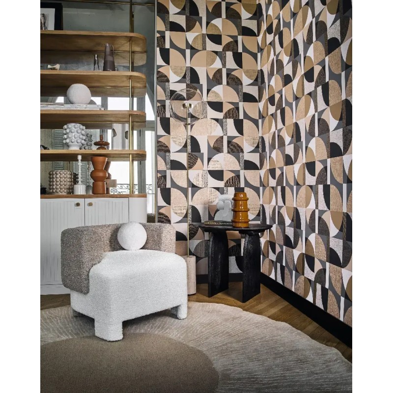 Papel pintado Art Decó beige con semicírculos geométricos de Casamance, colección Faubourg Des Lumières. Calidad vinílico lavable, medidas: 68 cm x 10 m.
