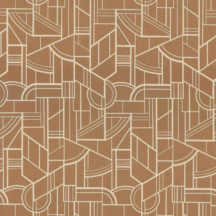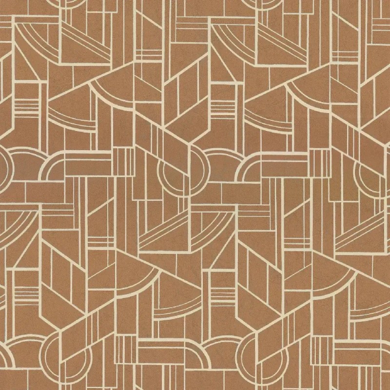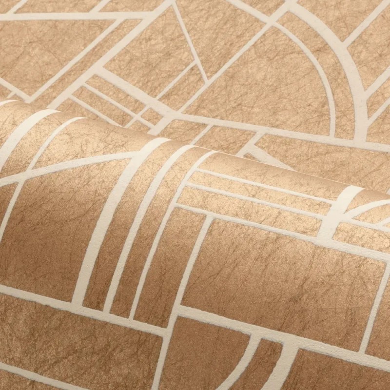 Papel pintado geométrico cobre metalizado de Casamance, colección Faubourg Des Lumières. Calidad vinílico lavable, medidas: 68 cm x 10 m.