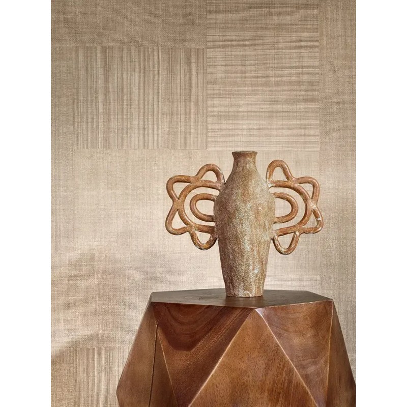 Papel pintado étnico marrón mosaico textil de Casamance, colección Casa Azul. Calidad vinílico lavable, medidas: 70 cm x 10 m.