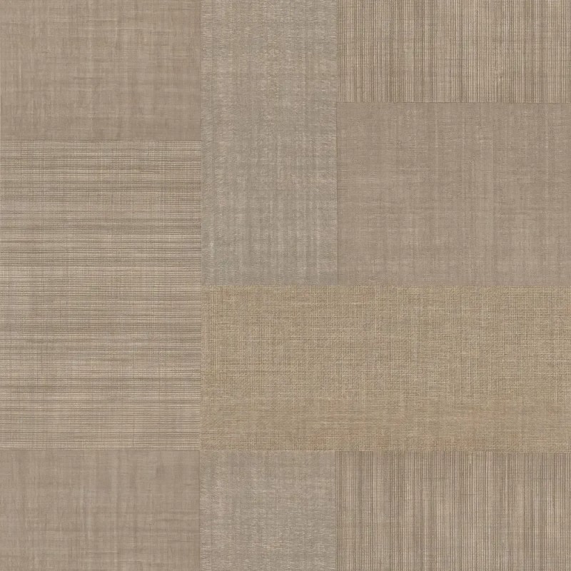 Papel pintado étnico beige patchwork textil de Casamance, colección Casa Azul. Calidad vinílico lavable, medidas: 70 cm x 10 m.