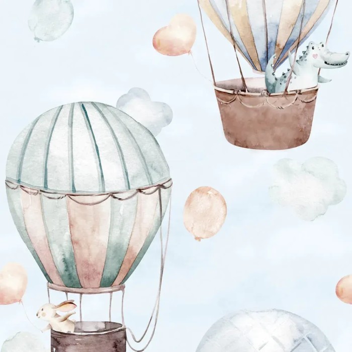 Papel pintado infantil azul pastel globos y guirnaldas, con un efecto visual llamativo. Marburg Kids Walls 45892.