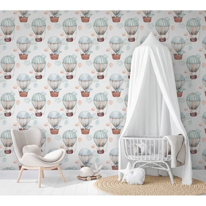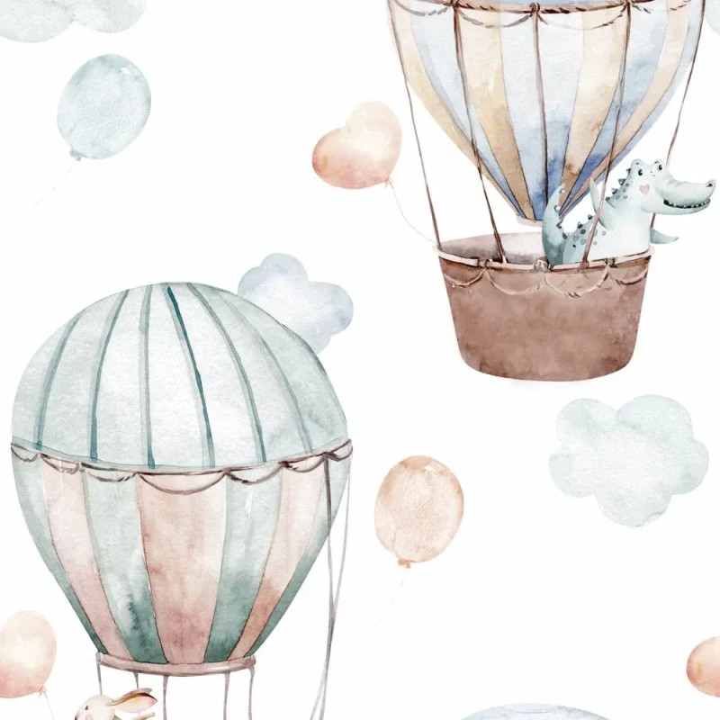 Perfecto para crear atmósferas únicas, papel pintado infantil blanco globos y guirnaldas acuarela Marburg Kids Walls 45887.