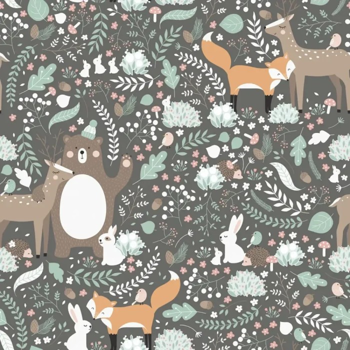 Papel pintado infantil blanco zorros, ciervos, osos, una elección con mucha presencia. Marburg Kids Walls 45872.