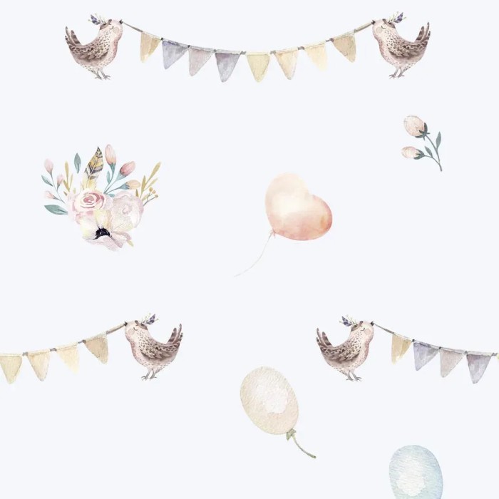 Perfecto para crear atmósferas únicas, papel pintado infantil blanco globos y guirnaldas acuarela Marburg Kids Walls 45887.